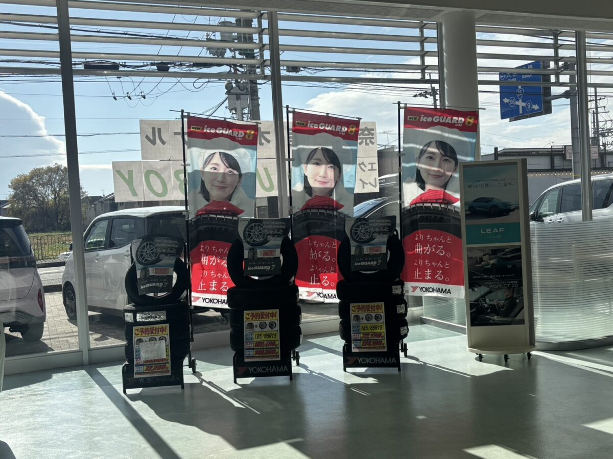 郡山店ショールームに、スタッドレスタイヤの展示が並びました❄️🚗