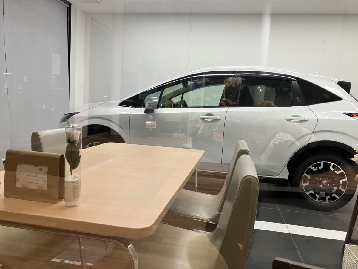 大きなガラス越しに見えるお車は、これからの毎日を共に過ごす大切なパートナー😊